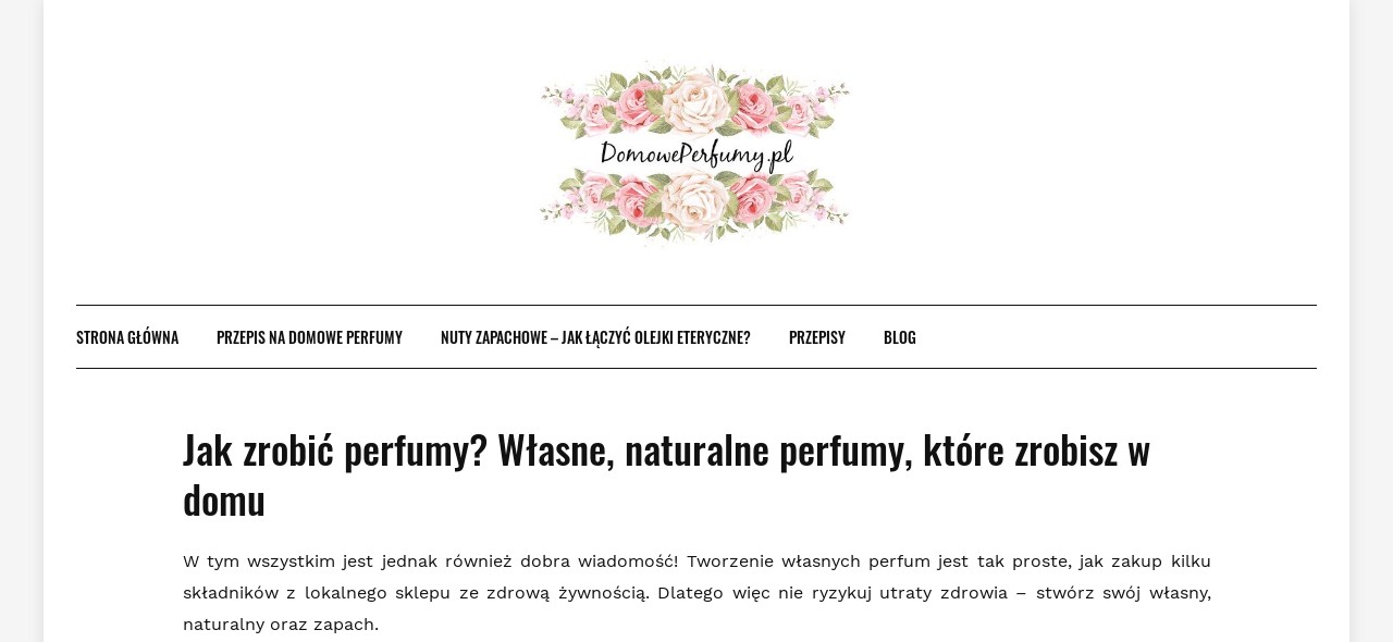 Stosujesz perfum, którego skład niekoniecznie jest naturalny, lecz taki, który może podrażnić Twoją skórę? Zdecyduj się na zamianę i rozpocznij własnoręczną produkcję Twojego unikalnego naturalnego zapachu! Nie wiesz jednak, jak zrobić samemu perfumy? Nie martw się, jeśli chcesz pozyskać w przystępny i sprawny sposób podstawową wiedzę na temat tego, jak wykonać samemu perfum, to koniecznie odwiedź stronę domoweperfumy.pl! Znajdziesz na niej wszystkie niezbędne informacje, które pomogą Ci sporządzić naturalną mieszankę zapachową!