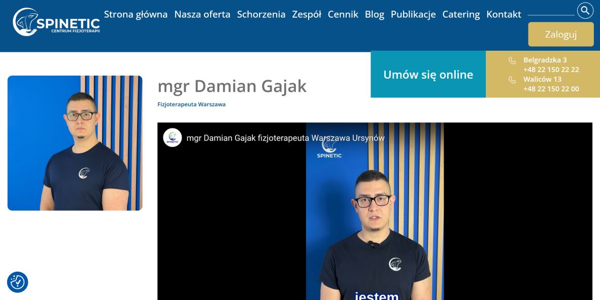 Strona internetowa: https://spinetic.pl/personel/mgr-damian-gajak-rehabilitacja/