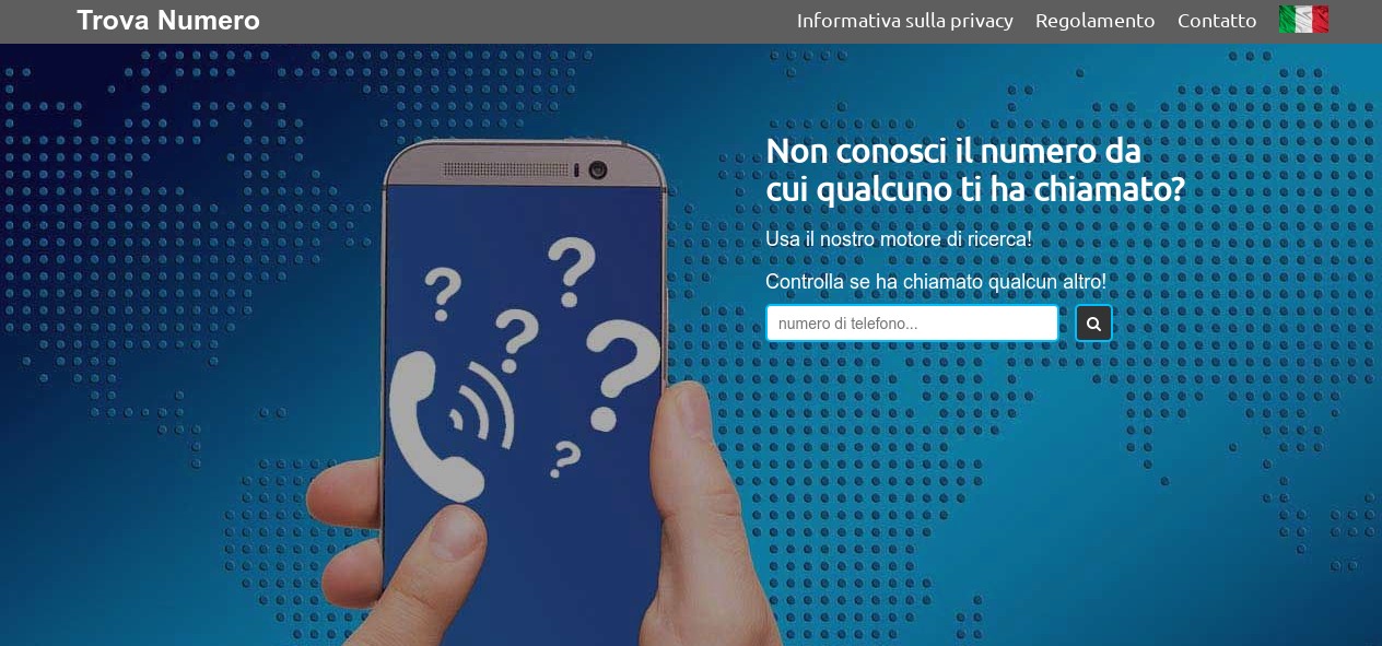 Trovanumero.it, bezpieczna strona z bazą numerów telefonicznych z terenu całych Włoch. Bardzo często są wykonywane połączenia z nieznanych numerów telefonów. Mogą to być firmy kurierskie, ubezpieczenia społeczne, oferty banków, ale coraz częściej oszuści, przez których odbierając telefon naliczane są niechciane opłaty. Nasza strona oferuje możliwość sprawdzenia numeru. Dowiesz się kto dzwonił oraz czyj to był numer z jakiego miejsca wykonano połączenie. Nie zawsze są to oszuści, ale należy zachować bezpieczeństwo do czego zachęcamy.